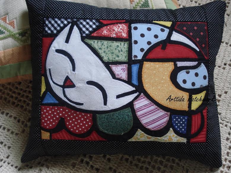 A amiga Maria Aparecida Gonzaga Sant’Anna está concorrendo para a 6ª Confraria da Costura (PAP Cris Miyke) do grupo Eu Amo Costurar com esta almofada com releitura Romero Britto.
