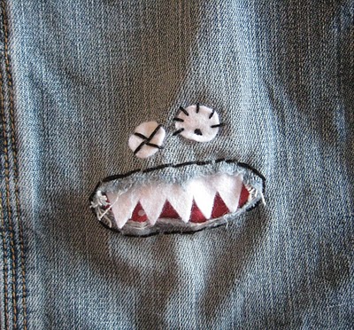 Seu filho apareceu com uma calça novinha rasgada? Essa é a hora de você transformar o buraco rasgado em um monstrinho muito engraçado. A calça não será perdida e você vai deixar a roupa do seu filho customizada.